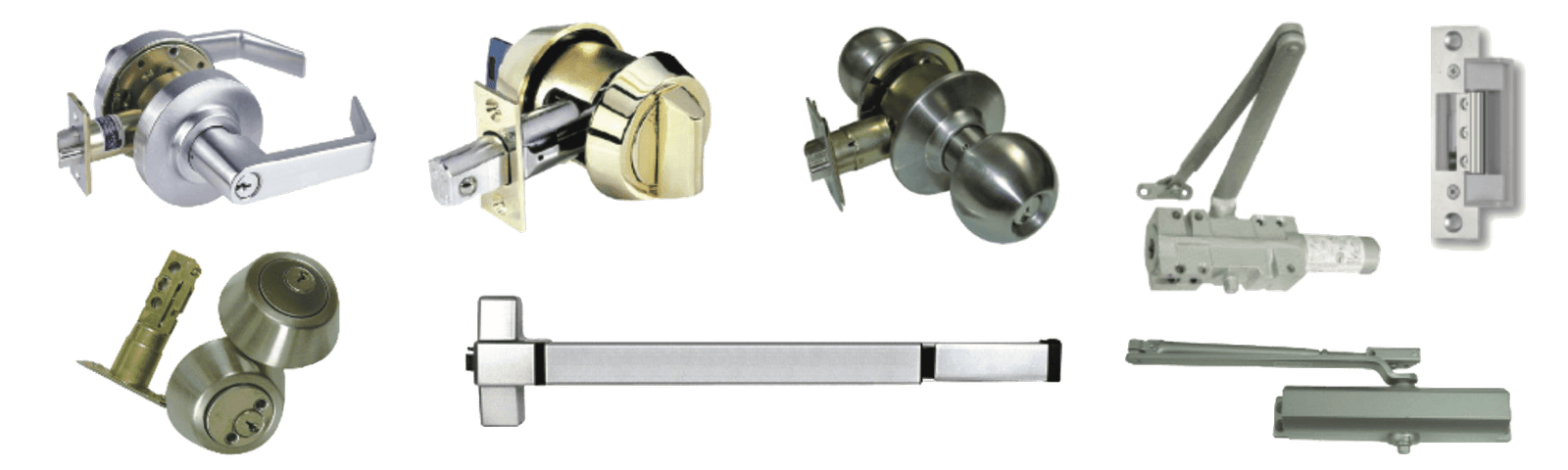 Types of commercial locks we install: entry locks and deadbolts, levers and knobs, high security products, electric systems. Also we install door closers, push-bars and other commercial hardware.